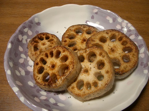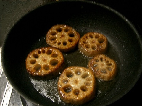 ※裏返すタイミングはレンコンが透き通ってきて焼き色が付いた頃。